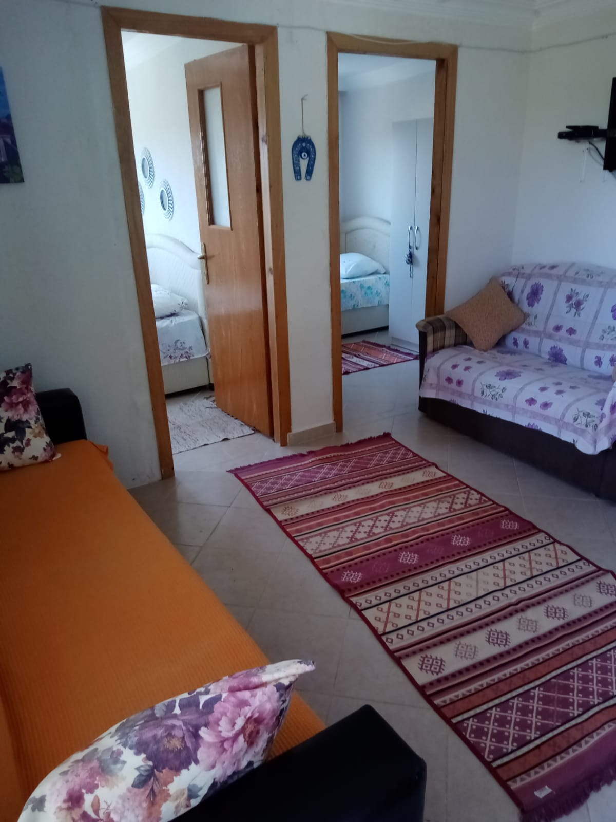 50m² 2+1 açık mutfak&salon 2 odada birer adet çift kişilik yatak ve açık mutfak&salonda 2 adet çekyat Önü geniş verandalı verandalı Doğu cepheli Kumsala 250 metre mesafede